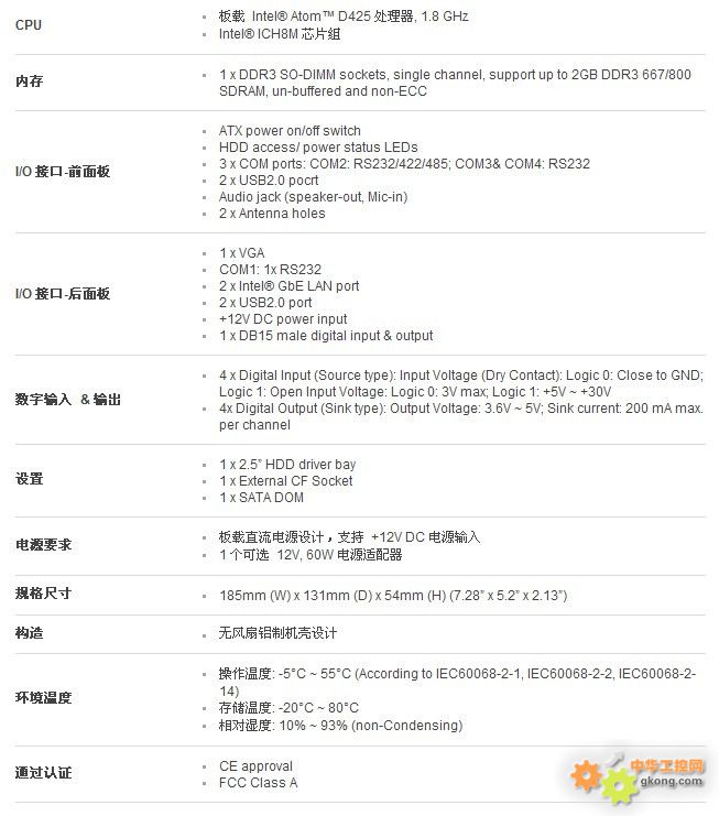 Intel® Atom™ D425 1.8 GHz ÎÞ·çÉÈϵͳ