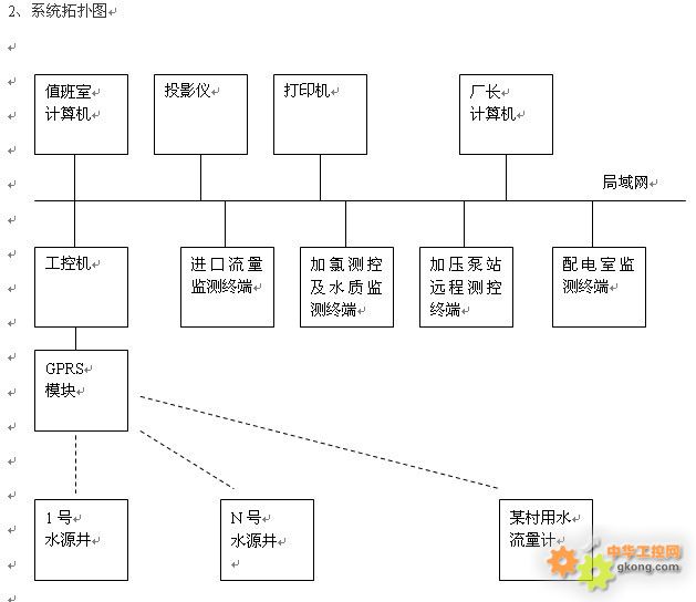 ¡ô Á÷Á¿¼à²âÖÕ¶Ë¡¢¼ÓÂÈÉ豸Զ³Ì²â¿Ø¼°Ë®Öʼà²âÖÕ¶Ë¡¢¼Óѹ±ÃÕ¾Ô¶³Ì²â¿ØÖÕ¶ËÓëÖµ°àÊÒ¹¤¿Ø»úÖ®¼ä²ÉÓþÖÓòÍøÓÐÏßͨÐÅ·½Ê½£»Ë®Ô´¾®Ô¶³Ì²â¿ØÖÕ¶ËÓëÖµ°àÊÒ¹¤¿Ø»úÖ®¼ä²ÉÓÃGPRSÎÞÏßͨÐÅ·½Ê½£¨Ö§³Ö¹âÏËͨÐÅ·½Ê½£©¡£