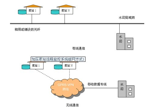 ͨÐÅÆ½Ì¨³£ÓÃÁ½ÖÖ£¬Ò»ÊÇÓÐÏßͨÐÅ£ºÃ¿¸ö¼Óѹ±ÃÕ¾Óëˮ˾֮¼ä×âÓùâÏËͨÐÅ£¬µ÷¶ÈÖÐÐÄ¡¢±ÃÕ¾¼à¿ØÖÐÐÄ¡¢¸÷Ö°Äܲ¿ÃÅÖ®¼äͨ¹ý¾ÖÓòÍøÍ¨ÐÅ£¬¸ÃͨÐÅÆ½Ì¨¿É´«ÊäÁ¬ÐøÍ¼Ïñ¡£¶þÊÇÎÞÏßͨÐÅ£ºÃ¿¸ö¼Óѹ±ÃÕ¾Óëµ÷¶ÈÖÐÐÄÖ®¼äͨ¹ýGPRSÎÞÏßÍøÂçͨÐÅ£¬µ÷¶ÈÖÐÐÄ¡¢±ÃÕ¾¼à¿ØÖÐÐÄ¡¢¸÷Ö°Äܲ¿ÃÅÖ®¼äͨ¹ý¾ÖÓòÍøÍ¨ÐÅ£¬¸ÃͨÐÅÆ½Ì¨²»ÄÜ´«ÊäÁ¬ÐøÍ¼Ïñ¡£