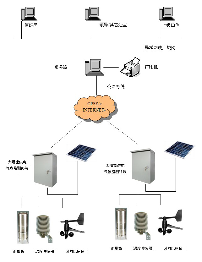 ÆøÏó¼à²âϵͳ¼à²âµã·Ö²¼¹ã£¬ÇÒ´ó¶à»·¾³¶ñÁÓ£¬¾ßÓÐÎÞµçÔ´¡¢²»Ò˲¼ÏßµÈÌØµã£¬¹ÊÏÖ³¡¼à²âÖն˺ËÐÄÉ豸ѡÓÃÎÒ¹«Ë¾Éú²úµÄGPRSµÍ¹¦ºÄ²â¿ØÖÕ¶Ë£¬¸ÃÉ豸¹¦ºÄµÍ£¬Ìå»ýС£¬ÌرðÊÊÓÃÓÚÆøÏó¼à²âϵͳ̫ÑôÄܹ©µç·½Ê½µÄÏÖ³¡Ó¦Ó㬿ɴó´ó½µµÍÌ«ÑôÄܹ©µç³É±¾ºÍÊ©¹¤³É±¾¡£