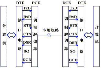 其次,RS-232C標準中所提到的“發送”和“接收”,都是站在DTE立場上,而不是站在DCE的立場來定義的。由於在計算機係統中,往往是CPU和I/O設備之間傳送信息,兩者都是DTE,因此雙方都能發送和接收。