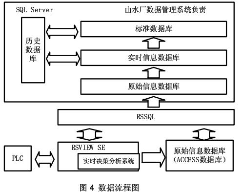 RSVIEW SE 先從各個主控 PLC 中得到各種生產數據,同時利用其標簽功能,計算合成數據,如效率、電耗等;RSSQL 采集各個 RSVIEW SE 標簽的值並保存到 SQL SERVER 中,先儲存到原始信息數據庫。