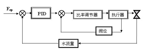 理論上理想的二冷配水控製曲線是一條二次曲線:F=aV2+bV+c,但是實現起來非常困難。為此,我們采用直線仿真曲線技術:采用三條斜率不同的直線來模擬二次曲線,根據當前的拉速及三條直線所對應的a、b值分別計算出三個配水量F1、F2、F3,然後取其最大值作為當前的實際給定值:Fsp = Max{F1,F2,F3}(如圖2所示)。此外,軟件上通過PID指令完成七段回路儀表調節控製(控製框圖見圖3)。