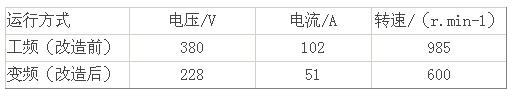 改造後的渣漿泵流量控製係統於2002年10月投入運行,由於采用了調節渣漿泵轉速來控製流量及引入了先進的二自由度PID控製策略,係統的控製範圍得到擴大,控製精度得到提高。現將改造前後渣漿泵電動機的運行參數列表如下: