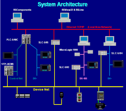 (3) 設備層。在設備層上采用的設備網,主要把底層的工業設備直接連接到車間控製器上,並對其進行配置和監視。這種連接無需通過I/O模塊,即可用方便而快速的實現與工業現場的大量設備的高速數據的采集,極大地減少了接線。設備網是一種柔性地、開放性的網絡,可與世界上150家以上的廠商提供的產品兼容。