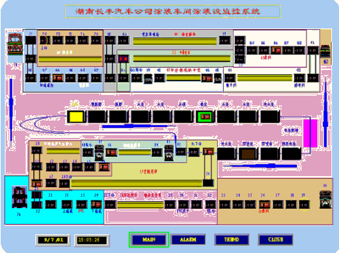 目mu前qian在zai世shi界jie範fan圍wei內nei,工gong業ye特te別bie是shi汽qi車che製zhi造zao業ye正zheng麵mian臨lin著zhe嚴yan峻jun的de挑tiao戰zhan。充chong分fen利li用yong先xian進jin的de自zi動dong化hua技ji術shu和he管guan理li方fang式shi,可ke以yi增zeng強qiang生sheng產chan運yun行xing的de高gao效xiao性xing,滿man足zu市shi場chang需xu求qiu,保bao持chi競jing爭zheng的de領ling先xian地di位wei,並bing獲huo得de最zui大da利li潤run。湖hu南nan長chang豐feng汽qi車che製zhi造zao股gu份fen有you限xian公gong司si(以下簡稱長豐)是全國最大的輕型越野汽車生產廠家,生產的獵豹汽車占據當前全國越野車43%yishangdeshichangfene。dansuizheshengchanguimodebuduankuoda,zaishengchanhewuliuguanlifangmiancunzaidewentiriyituchu,yijingchengweizuaigongsifazhandepingjing。womencaiyongchengshudeNetLinx開放式現場總線網絡在工業設備和高層設備之間提供連接,將底層的現場設備的控製和信息采集、中間層的協調控製和數據交換、數據的處理與通信以及上層監控與管理整個結合起來,並且作為子網接入其它類型的係統中。實現生產一線的控製係統與ERP係統中管理者決策信息交互,這將大大提高企業係統化管理水平,增強企業市場競爭力。