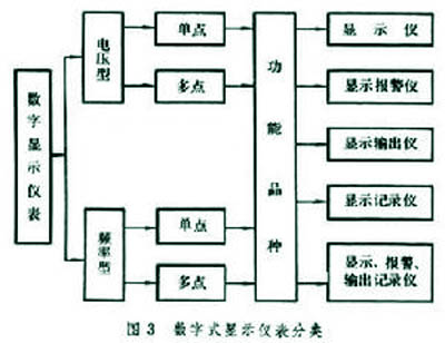 數字式顯示儀表 用數字顯示方式指示被測量的儀表。采用的顯示器件有熒光數碼管、液晶顯示器和發光二極管(又稱 LED數碼管)等。它是在模擬式指示儀表的基礎上發展起來的。特別在60年代末數字集成電路的出現,使數字顯示儀表得到迅速的發展。數字顯示與模擬指示比較,具有分辨率高、量程大、讀數方便、沒有視差、便於與計算機相連等優點。其缺點是:不易判讀被測量的變化趨勢;數字跳動頻繁而影響判讀。因此,模擬式指示儀表仍然是顯示儀表的主流。通常在要求精確讀數時才使用數字式顯示儀表。圖2是數字式溫度指示調節儀。它能顯示設定值、測量值和偏差值,並有上、下限設定,報警輸出和控製功能。數字式顯示儀表按采用的原理、顯示功能、點數分成多種類型(圖3)。它與各種變送器相配對被測量進行顯示和控製。一般備有打印輸出裝置並且可與計算機相連接。70年代末出現的帶有微處理機的各種智能化數字式顯示儀表,具有顯示精度高、自校準、自診斷等功能,可與計算機進行通信。