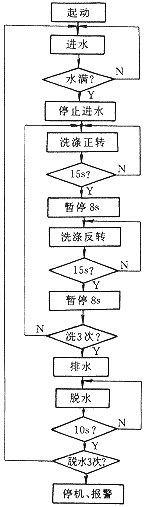 圖4 電動機運行情況梯形圖 根據邏輯代數表達式,畫梯形圖,如圖4所示。 圖4利用這種方法設計,最大的特點是可以把很多的邏輯關係最簡化。 當然出於可靠和安全性角度考慮的冗餘設計是另外一個問題。 四、程序流程圖設計法 PC采用計算機控製技術,其程序設計同樣可遵循軟件工程設計方法,程序工作過程可用流程 圖表示。由於PC的程序執行為循環掃描工作方式,因而與計算機程序框圖不同點是,PC程序框圖在進行輸出刷新後,再重新開始輸入掃描,循環執行。 下麵以全自動洗衣機控製為例,說明這種設計方法的應用。 首先畫出洗衣機工藝流程圖,如圖5所示。