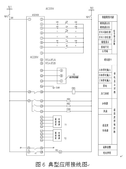 在某水泥廠高壓開關櫃設計中,全部采用了ASD 係列開關櫃智能測控裝置。應用方案見圖6 。圖中信號指示回路通過開關量輸入采集來實現一次原理圖指示;帶電顯示回路通過高壓傳感器輸入來指示母線是否帶電;溫濕度控製回路通過溫濕度傳感器輸入來實現溫濕度控製。並帶有Modbus 通訊輸出, gongyonghuyuanchengjiancehekongzhi。yigaiyiwangmeigekaiguanguixupeibeibutongchangjiadeduozhongchanpin,jijianshaolegongchengliangjieyuelechengben,youtigaolexitongdekekaoxing。tourushiyongdekaiguanguizhinengcekongzhuangzhiyiqilianghaodewendingxinghekekaoxingnengbaozhengleduikaiguanguineideyicishebeidebaohu,bingqiebaozhengleduiyudianya、電流、功率等參數的準確測量和對電能的準確計量,同時方便了用戶對開關櫃的實時監控。