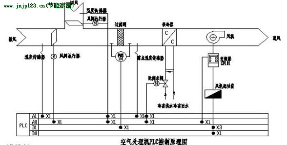如空氣處理機PLC控製原理簡圖所示: