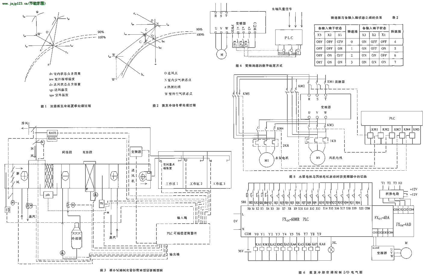 (2)當(dang)室(shi)內(nei)溫(wen)度(du)降(jiang)不(bu)到(dao)所(suo)需(xu)的(de)溫(wen)度(du)時(shi),此(ci)過(guo)程(cheng)可(ke)通(tong)過(guo)室(shi)內(nei)溫(wen)度(du)傳(chuan)感(gan)器(qi)來(lai)測(ce)量(liang)。則(ze)開(kai)啟(qi)間(jian)接(jie)蒸(zheng)發(fa)冷(leng)卻(que)器(qi),間(jian)接(jie)蒸(zheng)發(fa)冷(leng)卻(que)器(qi)水(shui)泵(beng)開(kai)啟(qi),冷(leng)卻(que)塔(ta)風(feng)扇(shan)開(kai)啟(qi)。如(ru)果(guo)水(shui)泵(beng)的(de)功(gong)率(lv)過(guo)大(da)不(bu)能(neng)采(cai)取(qu)直(zhi)接(jie)啟(qi)動(dong),可(ke)通(tong)過(guo)變(bian)頻(pin)來(lai)啟(qi)動(dong),通(tong)過(guo)對(dui)PLC進行編程來控製接觸器的接通和斷開,具體電路將在下麵詳細分析。