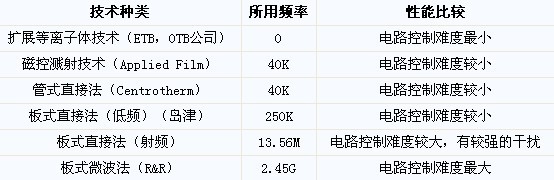 我們將不同頻率的PECVD方法在電路控製難度的比較列於表1中。