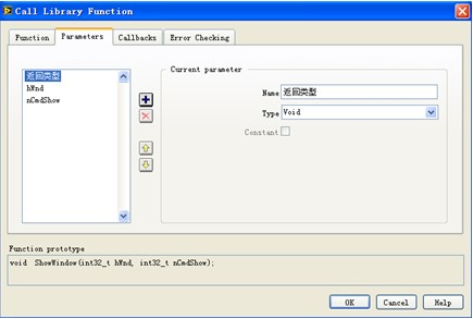 將節點放置在程序框圖中,雙擊會出現它的配置對話框,共有四頁。第一頁用於填寫被調用函數的信息(圖2)。Library name or path需給出DLL文件名和路徑,操作係統路徑下的DLL文件,直接輸入文件名也可調用,否則必須輸入全路徑。在這裏已經給出名字的DLL是被靜態加載到程序中的,也就是說當調用了這個DLL的VI被裝入內存時,DLL同時被裝入內存。LabVIEW也可動態加載DLL,隻要勾選上Specify path on diagram的選項即可。選擇了這個選項,在 Library name or path中輸入的內容就無效了,取而代之的是CLN 節點多出一對輸入輸出,用於指明所需要使用的DLL的路徑。這樣,當VI被打開時,DLL不會被裝入內存,隻用程序運行到需要使用這個DLL中的函數時,才把其裝入內存。Function name是需要調用的函數的名稱,LabVIEW會把DLL中所有的暴露出來的函數都列出,用戶隻要在下拉框中選取即可。Thread欄用於設定哪個線程裏運行被調用的函數。用戶可以通過 CLN 節點的配置麵板來指定被調用函數運行所在的線程。CLN 的線程選項非常簡單,隻有兩項: Run in UI thread和Run in any thread。LabVIEW的程序框圖上直接可以看出一個 CLN節點是選用