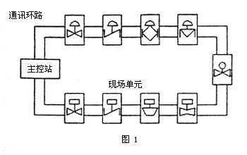不同的閥門執行器現場總線控製係統在結構上是基本相同的。它們一般是由主控站、通信環路和現場單元(本體為閥門或執行器)組成。係統結構框圖如圖1所示。