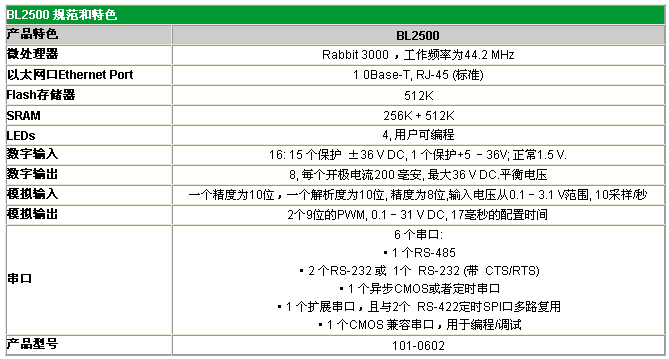 Embedded PLC應用開發包可應用在Rabbit 3000的單板機上,使用PLC(可編程邏輯控製)編程通用的標準軟件環境。自動化控製應用係統設計者現在能夠從Rabbit獲得更多高性價比的硬件解決方案,並且軟件開發與國際標準IEC61131-3兼容。 自動化控製係統像工廠裝配生產線,一般都使用工業編程語言,例如:順序功能圖(SFC),功能塊圖(FBD),梯形圖(LD),結構文本(ST)和指令列表(IL)。Embedded PLC應用開發包支持IEC61131-3標準中包含的所有這些語言,另外還支持其他工業語言流程圖(FC)。開發包還包括ISaGRAF V3.50版本(含32個I/O包),它支持Rabbit硬件平台的移植。 Embedded PLC應用開發包為您提供所有需要的工具,這樣您可以在Rabbit Semiconductor SBC上使用ISaGRAF PLC編程係統。在該開發包中還包括BL2500,帶flash存儲器,SRAM,數字I/O口,模擬I/O,RS-232/RS-485串口以及10/100baseT以太網口的高級單板機。BL2500單板機為自動化控製工程師提供功能強大,低成本的嵌入式解決方案,適用於像工業裝配控製,訪問控製,HVAC和自動售貨機等高級應用。BL2500僅僅100 x 100毫米的尺寸大小易於安裝在標準100毫米的DIN導軌中。外部連接是通過偏振滾動摩擦鎖相連接器以及線纜提供。 產品特色: ・ 支持32個I/O 的ISaGRAF V3.50平台 ・ 完整具備BL2500特性 ・ 內嵌BL2500 Embedded PLC內核 ・ 原裝線,連接器和終端 ・ 編程連接線和文檔 ISaGRAF V3.50支持以下工業可編程語言: ・ 順序功能圖(SFC) ・ 功能塊圖(FBD) ・ 梯形圖(LD) ・ 結構化文本(ST) ・ 指令表(IL) ・ 流程圖(FC) 應用 ・ 工業自動化 ・ 運動控製 ・ 進程控製 ・ 分布式控製係統 ・ 複雜網絡