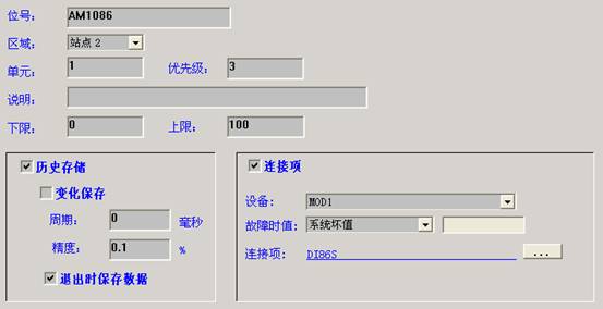一般的應用中隻會涉及到有限的幾種設備類型和幾種點類型。對於每種設備或點類型我們要在畫麵中建立相應的窗口,該窗口用於對I/O設備或點進行維護。下麵是一簡單的點定義窗口: