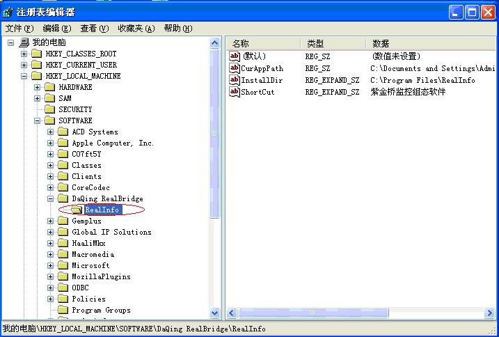 HKEY_LOCAL_MACHINE\SOFTWARE\ DaQing RealBridge\RealInfo如圖3