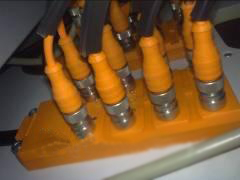 在產品試用過程中,使用原有的M12×1預鑄型接插件可以和Turck分線盒相匹配,技術人員注意到現場除了使用M12×1預鑄型接插件意外,還用到了帶有LED指示燈的接插件和用於連接電磁閥的閥式接插件。因此,又向客戶展示了接插件係列產品,並且推薦使用Turck新型M12×1快速插拔式接插件與分線盒連接。