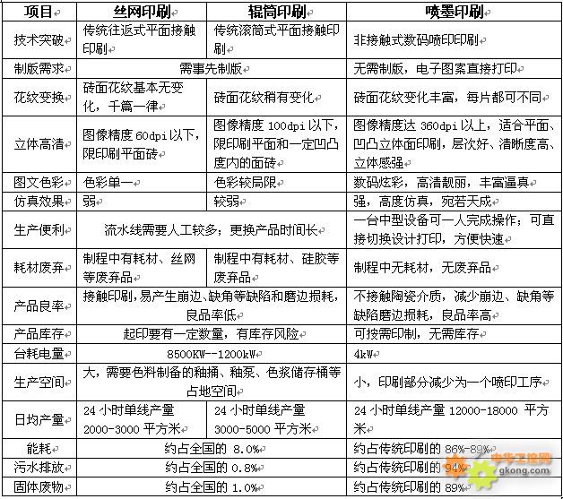 陶瓷 deshuliangheyangshixuqiuxunsutishengdejintian,wangyinhegunyinyijingbunengmanzurenmendexuqiu。zhongguosuiranshishijiegongrendejiantaoshengchandaguo,danchanpinyizhibeidingweizaizhongdidangshichang,zaishijiecizhuanshichangshangmaibushanggaojia,zheyucaiyongdeyinshuajishubugouxianjinbuwuzhijieguanxi。youqishiyinshuaxiaolvdi、能耗高與追求高效、提倡節能環保的當今社會格格不入,受到了來至各方的壓力。一台四色版(C/M/Y/K)網印或輥印機加上單色印花釉的色料製備等工序耗電量在8500~12000kW, 是瓷磚生產技術強國意大利和西班牙所采用印刷機耗電量的2000-3000倍!瓷磚生產過程的汙水排放和固體廢物產生量分別占我國工業汙水排放和工業固體廢物產生量的0.8%和1.0%,這其中印刷階段的排放占有相當比重。摘不掉高能耗、高汙染和高排放“三高”帽子的瓷磚建陶業一直是我國能源困局的一員,每年用電高峰時,瓷磚廠總是被排在首輪限電用戶之列。由於能耗高、售價低,我國的陶瓷行業每百萬美元能耗是世界平均水平的3.1倍,是日本的9倍。為此,國家製訂了《建築衛生陶瓷產品單位能耗限額》、《陶瓷工業汙染物排放標準》等一些列國家標準,根據這些標準,將有超過20%的中小陶瓷企業因達不到要求而麵臨被淘汰。