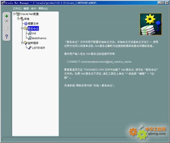 為了便於使用的方便,一般我們把某一個oracle數據庫係統上的某一個特定數據庫或者全局數據庫做一個映射,稱為“服務名”,然後使用服務名即可訪問數據庫。使用Net Manager管理工具: