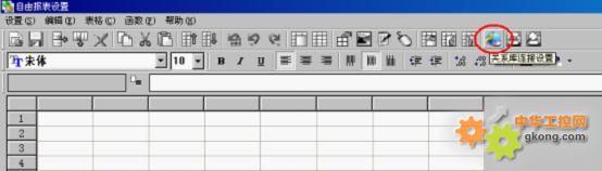 在紫金橋組態軟件開發界麵的窗口中,創建一個自由報表對象,雙擊進入其屬性設置,點擊“關係數據庫聯結設置”: