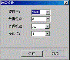 點擊“設置”按鈕,彈出端口參數設置的對話框,波特率是9600,數據位是8,奇偶校驗是無,停止位是1。如圖4所示;