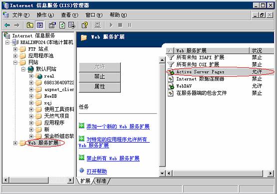 要啟用已禁用的 Web 服務擴展,請單擊“允許”。