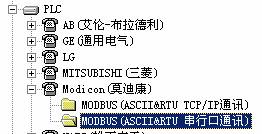 台達DVP係列PLC支持Modbus ASCII&RTU 串口協議。因此與紫金橋監控組態軟件進行連接時可以選用Modicon(莫迪康)下麵的Modbus(ASCII & RTU 串口通訊)協議,如下圖所示: