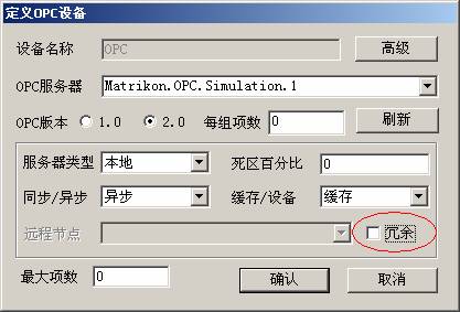 當進行OPC驅動設置時,在進入OPC設備定義對話框後單擊“冗餘”選項,會彈出冗餘設置對話框,如下所示: