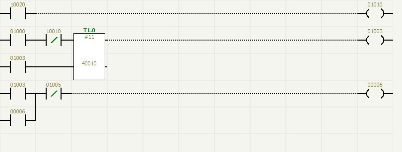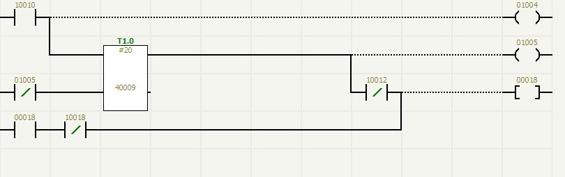 guanquchuguandekongzhifamenyinweigebaodeyuanyincaiyongdeshiqidongfamen,shitongguodiancifaduiqijinxingkongzhide。suoyizaiguanqujiankongxitongzhongduiguanquchuguanfamendejiankongcaiyongledongzuofanyingjiancehe“看門狗”檢測相結合的方法,在氣動閥開啟或關閉時,都同時檢測氣動閥的兩點回訊反饋(氣動閥的回訊反饋原理請參閱有關說明書,不在這裏敘述),通過毅天PLC編程,使氣動閥的兩點回訊形成一定的邏輯關係,使氣動閥的控製執行和監控更加可靠,達到零失誤。圖(6)是采用這種邏輯方式監控一個氣動閥的梯形圖。其中00001為電磁閥線圈,10002、10003為氣動閥回訊反饋動作,00008、00016為回訊報警。