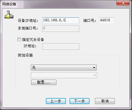 輸入與計算機連接的PLC以太網口IP地址和端口號,點擊“下一步”按鈕。