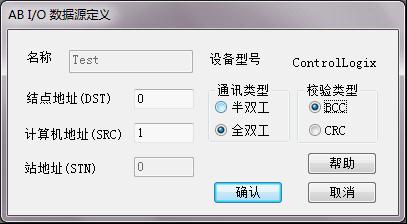結點地址(DST):PLC的站地址,由於AB係列PLC 的型號不同,設備地址的範圍不同,所以對於某一型號設備的地址範圍,請見相關硬件手冊。可通過編程軟件RSLogix5000來設定PLC的地址。