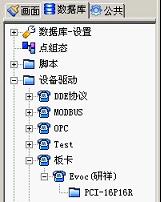 隨後運行紫金橋開發係統,展開“數據庫”選項卡,找到“設備驅動-〉板卡-〉Evoc( 研祥 ) ”驅動,如下圖所示: