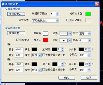 - 自由曲線的設置,X、Y軸的主分割線的顏色可由用戶選擇,選黑色就與背景一樣了看似沒有。