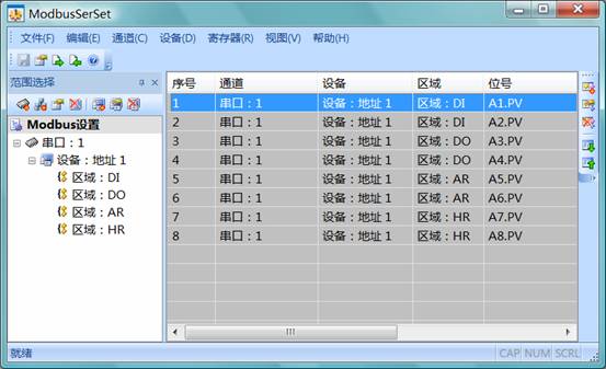 當定義完通道和設備之後就可以給設備增加寄存器了。