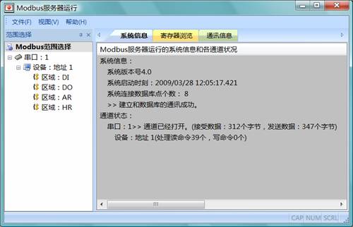 紫金橋的Modbus服務器從1.0開始到3.1版本,功能不斷提升,但是都隻能仿真一個Modbus設備的HR區域。新的紫金橋Modbus服務器為4.0版本,它無論在界麵上,還是功能上都有了很大的提高。80%以上的代碼都使用.NET開發工具進行了重寫。現在紫金橋Modbus服務器已經可以把實時數據庫中的數據映射為任意數量的Modbus設備的所有區域。