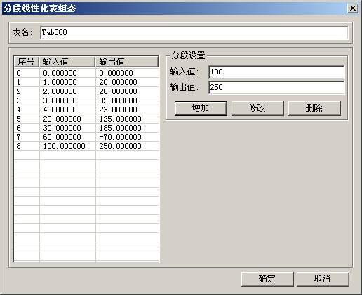 點擊增加,則進入到分段線性化表組態: