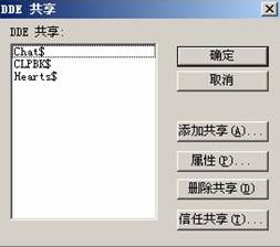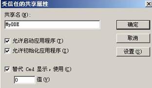 點擊“添加共享”,彈出“DDE共享屬性”對話框。如下圖: