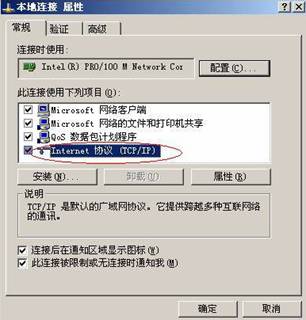 選擇Internet協議(TCP/IP),點擊屬性,打開“Internet協議(TCP/IP) 屬性”對話框,如下圖: