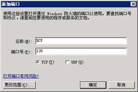 DCOM是基本遠程過程調用(RCP)服務實現的,因此要通過DCOM實現遠程通訊必需啟動RCP服務,並將它使用的端口添加到Windows防火牆的例外中。在例外選項卡中點擊“添加端口”按鈕,打開“添加端口”對話框: