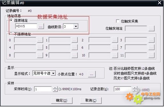 百分比趨勢圖的地址必須要先在【工程設置】中的【趨勢圖記錄區】中設置-如下圖。
