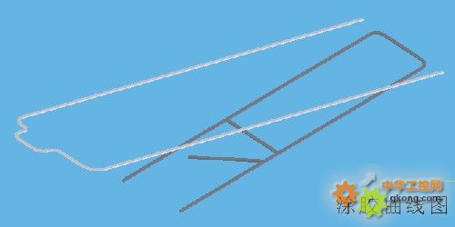 塗膠曲線為空間三維曲線。共有兩條塗膠曲線,空間夾角為16度