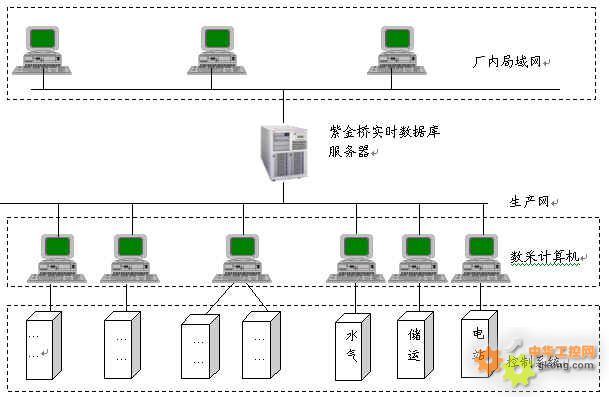 下圖是某大型生產係統的連接示意圖,管理人員通過本廠主頁進入係統,即可察看到各車間的生產畫麵,可以瀏覽實時數據、察看報警、和曆史記錄。