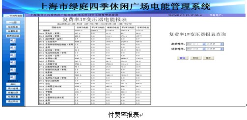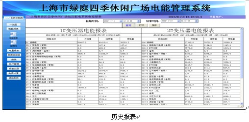 報表可以查詢所有回路任意時間間隔段所用的電度數,同時報表具有打印及導出功能