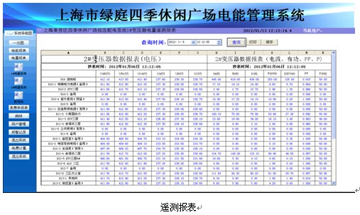 報表可以查詢任意時刻所有回路的三相電壓、三相電流、有功功率、無功功率、功率因數,並有報表打印及導出功能。