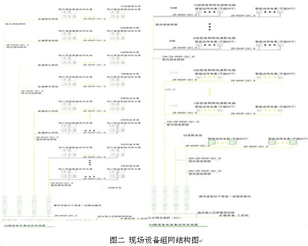 yishangtuweimoushejiyuanzhenduizhongqingguangdashenghuofuwuqudegongshuigongdianxitongshejidenenghaojiancexitongtuopujiegoutu。tuerzhongzuobianweidandongjianzhudegongshuixitongtuopujiegou,youbianweidandongjianzhugongdianxitongtuopujiegou。zhenggexitongbaokuogaijianzhuqundeqigezixitonghezhongxinjiankongshideyigezongjiankongxitong。zixitongdeshujubaokuo:獨棟建築樓層中的配電豎井內的電表數據;樓層各房間內供水豎井內的冷/熱水表數據。數據全部由屏蔽線經RS485接口傳至數據采集器,然後由五類線經RJ45接(jie)口(kou)接(jie)入(ru)當(dang)地(di)局(ju)域(yu)網(wang)。圖(tu)三(san)中(zhong)左(zuo)邊(bian)表(biao)示(shi)獨(du)棟(dong)建(jian)築(zhu)能(neng)耗(hao)監(jian)測(ce)子(zi)係(xi)統(tong)監(jian)控(kong)室(shi)的(de)組(zu)網(wang)結(jie)構(gou)圖(tu)。網(wang)絡(luo)交(jiao)換(huan)機(ji)下(xia)端(duan)連(lian)接(jie)來(lai)自(zi)水(shui)表(biao)和(he)電(dian)表(biao)的(de)多(duo)個(ge)數(shu)據(ju)采(cai)集(ji)器(qi),上(shang)端(duan)連(lian)接(jie)監(jian)控(kong)主(zhu)機(ji)完(wan)成(cheng)數(shu)據(ju)上(shang)傳(chuan)。七(qi)個(ge)子(zi)係(xi)統(tong)的(de)數(shu)據(ju)采(cai)用(yong)光(guang)纖(xian)通(tong)訊(xun)的(de)方(fang)式(shi)轉(zhuan)發(fa)至(zhi)中(zhong)心(xin)監(jian)控(kong)室(shi),如(ru)圖(tu)三(san)中(zhong)右(you)邊(bian)圖(tu)示(shi)。每(mei)個(ge)監(jian)控(kong)主(zhu)機(ji)配(pei)UPS電源。