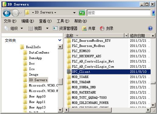 a. 打開資源管理器,找到紫金橋軟件安裝目錄(也可以通過工程管理器,按第一章3節的方法,從彈出菜單的選擇“打開安裝目錄”),再找到IO SERVERS子目錄,從此目錄下找到OPC_Client目錄。
