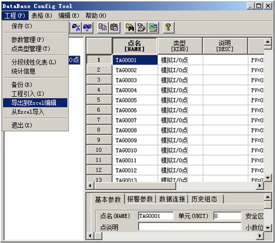a. 通過導出功能備份需要分解設備上的數據連接項。進入點組態後,在“工程”菜單中選擇“導出到Excel編輯”對當前工程的組態進行備份。