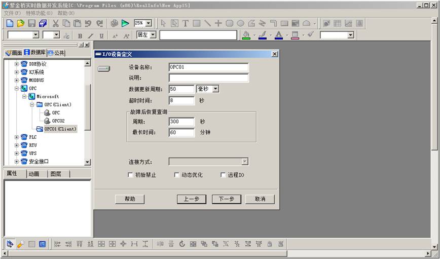 在完成上述操作過程後,我們就可以利用分解後的驅動重新建議原來的設備了。這裏以設備OPC01在,IO驅動OPC01上重新建議為例。