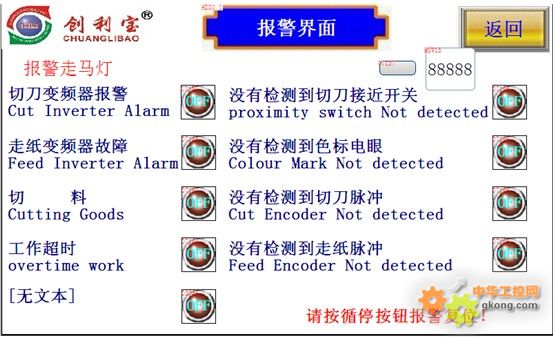 2.6“密碼以及報警”:設置了在畫麵上進行修改密碼以及對一些參數設置的保密工作。同時可以具體查看機器是否出現故障。